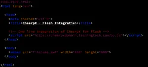 CheerpX for Flash is easily integrated on any existing HTML page that embeds Flash via the <embed>, <object> tags or swfobject.js library.